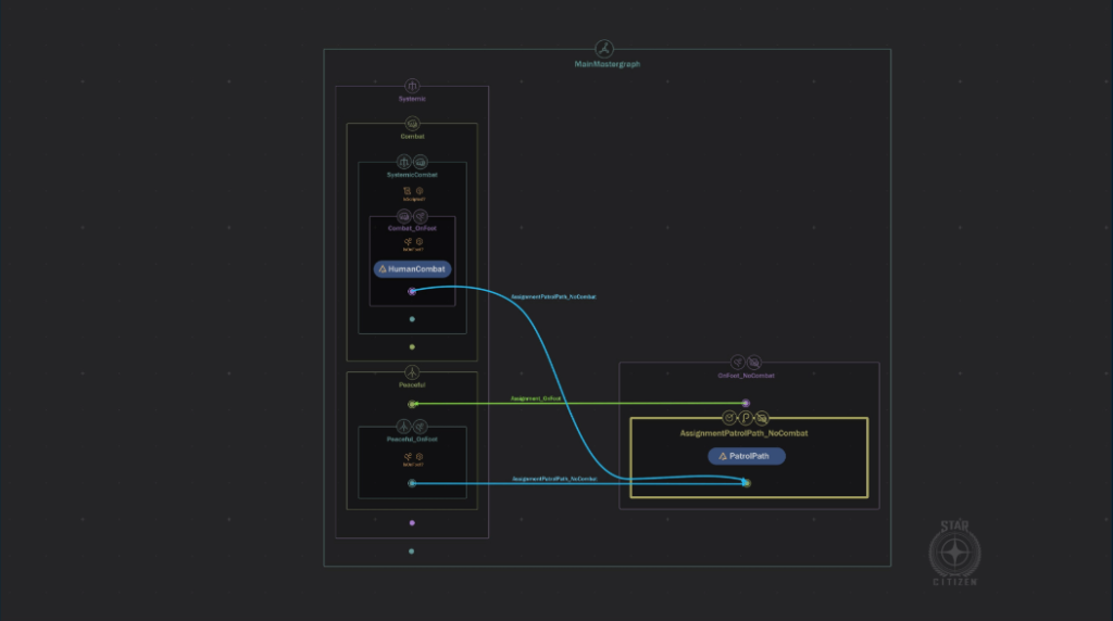 Le développement s’est poursuivi sur de nouveaux comportements destinés à accompagner certaines évolutions narratives prévues dans l’univers au cours des prochains mois. Enfin, l’équipe IA est revenue sur certains problèmes liés aux comportements de population dans les zones d’atterrissage déjà en jeu.